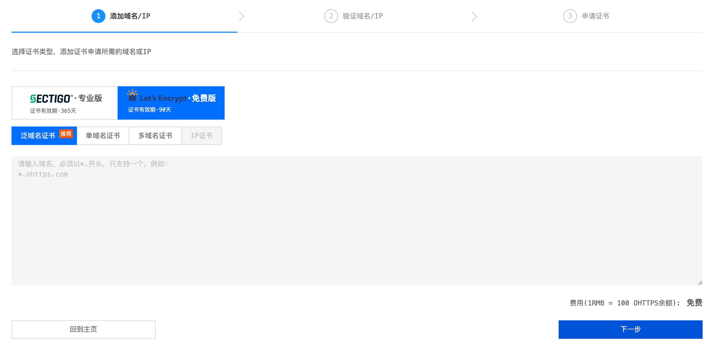 There are many options for free SSL certificates. I use ohttps.com — the only provider I found that offers wildcard certificates for free. With a wildcard certificate, renewing every 3 months (which all free certificates require) becomes much easier.
